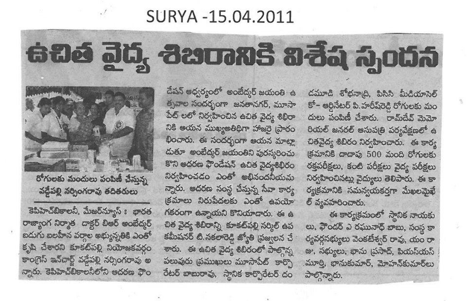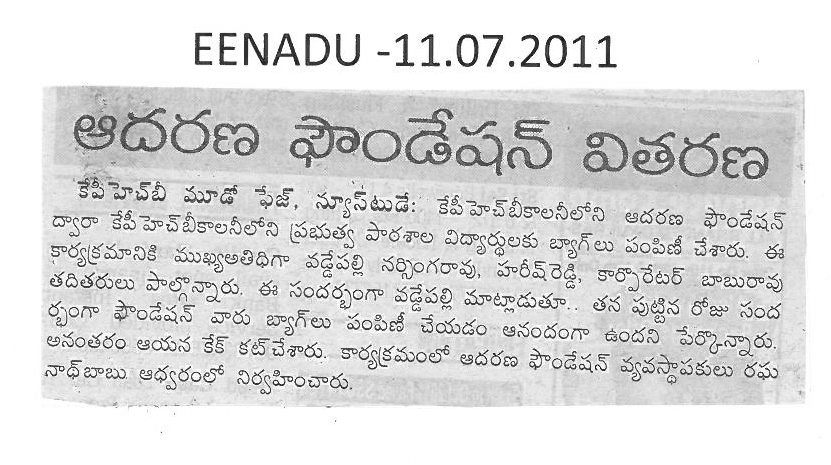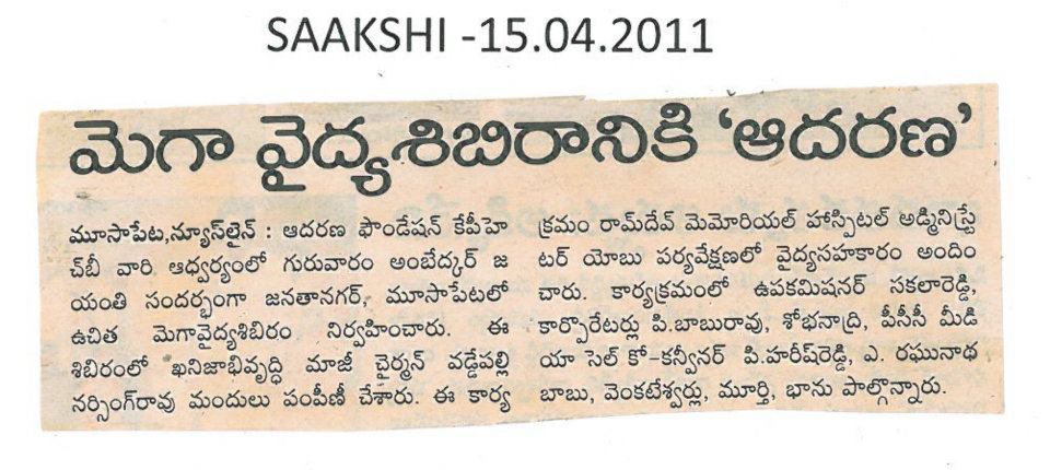 ADARANA FOUNDATION PLOT # 1118/A, 1ST FLOOR VENKATARAMANA COLONY, GOKUL PLOTS, KUKUTPALLY, HYDERABAD- 72.